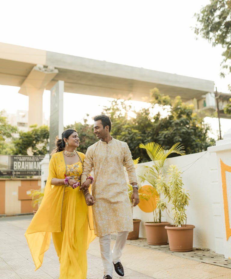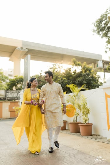 From the vibrant Haldi ceremony filled with laughter, to their classic Maharashtrian wedding rituals, every moment felt rooted in love and joy. The couple brought their own charm to every frame — warm, candid, and full of personality.